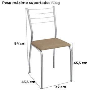 Conjunto 2 cadeiras 2C140, ideais para salas de jantar ou recepções. Estrutura em MDP (15 mm), corpo/ pés tubular em alumínio (Tubo 7/8 com parede de espessura 0,90mm), encosto com detalhes em arame 0,5mm. Estofadas com espuma D26 e revestido em Corino (material sintético que imita couro), além de sapatas para proteção ao piso. Este produto será entregue em 01 volume.