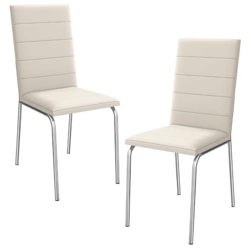 Conjunto 2 cadeiras 2C091, ideais para salas de jantar ou recepções. Estrutura em MDP (15 mm), base/ pés tubular em alumínio (tubo 7/8 polegada com espessura 0,90 mm). Estofadas com espuma D20 e revestido em Corino (material sintético que imita couro) garantindo conforto, durabilidade e fácil limpeza. Possui sapatas para proteção ao piso. Este produto será entregue em 01 volume.