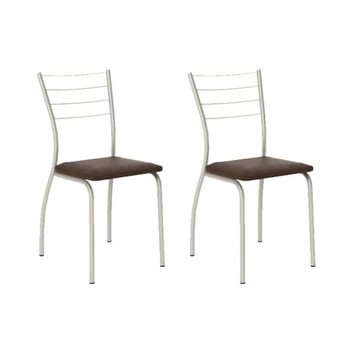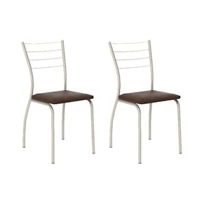 Cadeira Sala de Jantar 1700 Kit Aço 2 Uni Prata - Assento Courano Cacau - Carraro