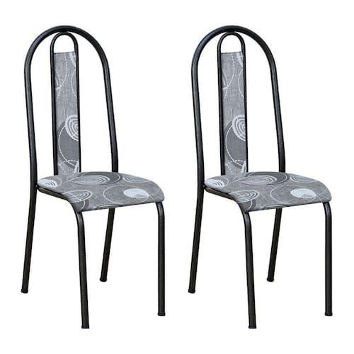 Kit 2 Cadeiras de Cozinha Arizona Estampado Pará Pés de Ferro Preto - Pallazio - Cinza