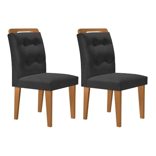 Kit 2 Cadeiras de Cozinha Imperatriz 2 Un Madeira Capuccino/Linho Grafite - Rufato