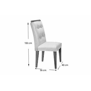 Dimensões(Cm): Comnto(Profundidade): 56cm x Largura: 42cm x Altura: 102,5cm Material de Estrutura - em madeira Tipo de Pintura - UV Tipo de Acabamento da Pintura - Fosco Forração do Revestimento - Tecido Tipo do Assento - Estofado Tipo de Encosto - Estofado Tipo dos Pés - Pés de Madeira Montagem do Produto - Desmontável Certificação de Qualidade - Qualidade Aprovada Garantia - 3 meses