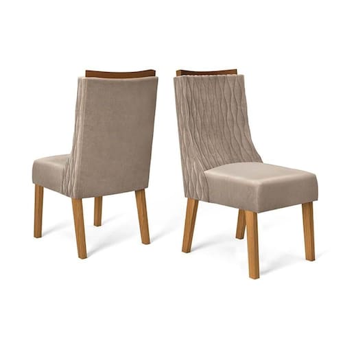 Cadeira Sala de Jantar Jade Kit 2 Un Carvalho Nobre/Suede Kraft - DJ Móveis