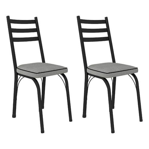 Kit 2 Cadeiras De Cozinha Luisiana Estampado Platina Pés De Ferro Preto - Pallazio