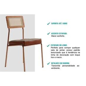 Material de Estrutura - Estrutura 100% Aço Estilo do Móvel - Clássico Tipo de Pintura - Epóxi Tipo de Acabamento - Detalhe em Tela Materiais do Estofamento - Estofamento em Espuma Forração do Revestimento - Tecido Tipo do Assento - Estofado Tipo de Encosto - Estofado - Encosto em Tela Suporte de Peso - 100 Kg