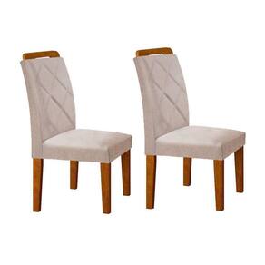 Cadeira Sala de Jantar Melissa Kit 2 Un Madeira Capuccino/Linho Bege Turim - Rufato