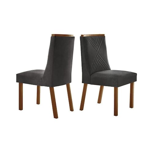 Kit 2 Cadeiras De Cozinha Montreal 2 Un Madeira Capuccino Linho Grafite Rufato