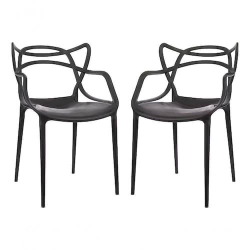 Kit 2 Cadeiras De Design Allegra Interior E Exterior - Preto Preto A cadeira Allegra, com seu design contemporâneo, combina estética e conforto. Seu encosto curvo e armações entrelaçadas oferecem suporte e um toque artístico. É perfeita para qualquer espaço e se adapta a diferentes estilos decorativos. Ideal para uso interno ou externo. Adequado para interior e exterior. Conta com tampas nas suas pernas para evitar que o piso se risque. Caracteristicas Fabricada em polipropileno com fibra de vidro. Peso: 4kg Profundidade: 50 cm Altura: 80 cm Altura do chão ao apoio de braços: 66 cm Altura do chão ao assento: 45 cm Suporta: 150Kg NA