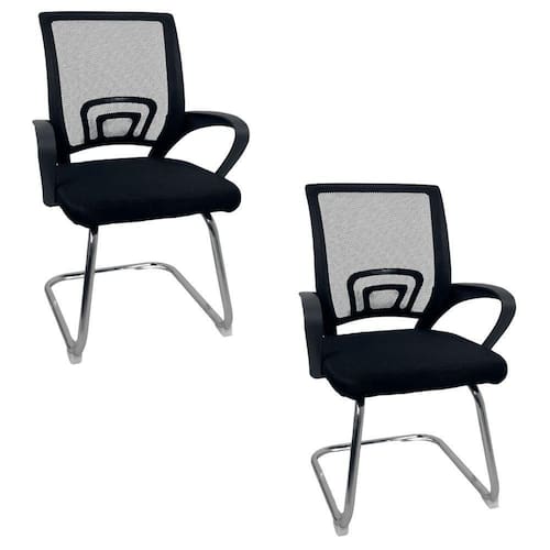 Kit 2 Cadeiras De Escritório Begonia Oficial Tela Mesh Fixa Preto