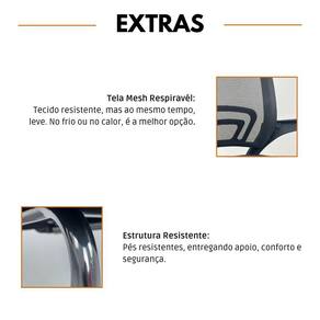 Conforto para Longas Horas O assento estofado em espuma com revestimento em tecido proporciona uma experiência ergonômica, enquanto o encosto em tela Mesh garante maior ventilação.