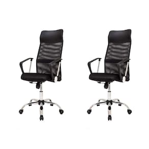 Kit 2 Cadeiras Para Escritório Com Braço Base Cromada Rodinhas Resistente Confortável e Barata Tipo Presidente Executiva Alta Para 120kg Cairo Tela Mesh Preta