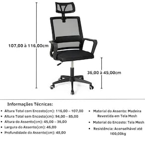 > Altura Total com Encosto(cm): 116,00 107,00