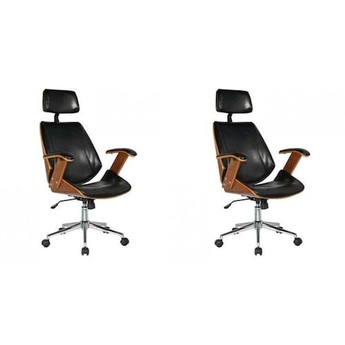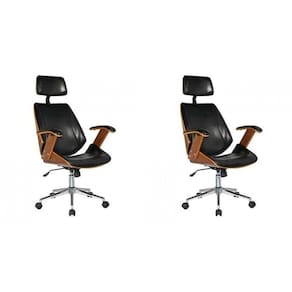 Cadeira office giratória com ajuste de altura e função relax. Estrutura em madeira nogueira compensada, estofada e revestida em Poliuretano. Possui base estrela cromada e rodízios em nylon. Altura do Conjunto: 124 cm Ambiente: null Ambiente Principal: Escritório Cor: Preto/Marrom Informação Complementar: 2x Cadeira de Escritório Presidente Giratória com Apoia Cabeça Office Lisboa Preto Largura: 63 cm Altura: 124 cm Peso: 15 kg Profundidade: 61 cm Necessita Montagem: Sim