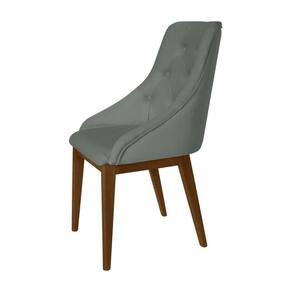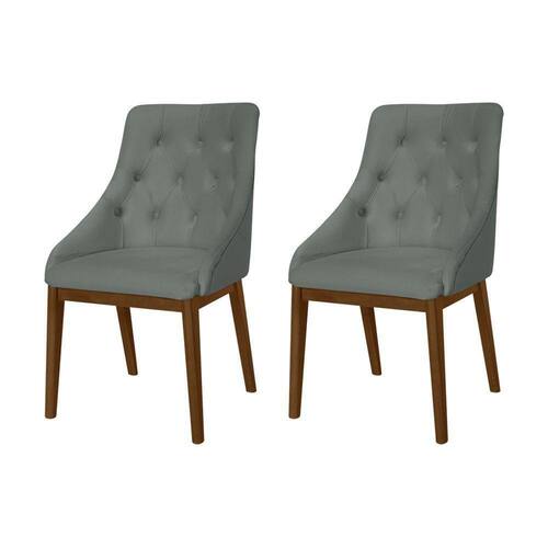 Kit 2 Cadeiras De Jantar Estofada Elisa Anatômica Capitonê Veludo Cinza Base Madeira Maciça Imbuia - Cor: Cinza