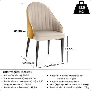 > Material do Assento: Madeira, estofada com espuma e revestida com material ecológico