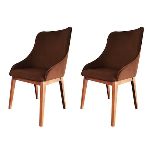 Kit 2 Cadeiras De Jantar Estofada Elisa Anatômica Couro Pu Caramelo Base Madeira Maciça Mel - Cor: Marrom