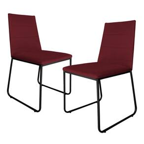 Kit 2 Cadeiras de Jantar Estofada Lille Base Preta Veludo Bordô - Montanaris Decor