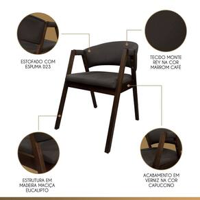 A Cadeira Poltrona Ravena é a escolha ideal para quem busca conforto e estilo para sua casa. Com estrutura em madeira eucalipto ecologicamente correta, esta poltrona é resistente e durável, para te acompanhar por muitos anos. O acabamento em verniz oferece um visual clássico e elegante, que combina com diversos estilos de decoração. O assento e encosto estofados com espuma D23 garantem um conforto inigualável, perfeito para relaxar após um longo dia. O tecido Monte Rey é macio e aconchegante, e complementa o design com um toque de sofisticação. Funcional, elegante e confortável, a Cadeira Poltrona Ravena é a escolha perfeita para quem busca um móvel de qualidade para decorar sua sala de estar, quarto ou qualquer outro ambiente da sua casa. CARACTERÍSTICAS TÉCNICAS DA CADEIRA RAVENA: - Estrutura: Madeira Eucalipto Ecologicamente Correta; - Acabamento: Verniz na Cor Capuccino; - Estofado: Assento e Encosto com Espuma D23; - Tecido: Monte Rey na Cor Marrom Café. *CADEIRAS ENTREGUE MONTADAS. *KIT COMPOSTO POR 2 CADEIRAS RAVENA. DIMENSÕES DA CADEIRA RAVENA: Altura: 78 Cm Altura Assento: 52 Cm Largura: 55 Cm Profundidade: 60 Cm Peso: 5 Kg INFORMAÇÕES ADICIONAIS: ATENÇÃO: Móvel produzido em madeira maciça natural podendo ocorrer mudança no tom da madeira conforme o produto;*Conferir se o produto está de acordo com o que comprou, produto danificado não será aceito troca;**As imagens ambientadas são meramente ilustrativas e podem apresentar itens que não compõe o produto. As cores do produto podem variar de acordo com o monitor, a iluminação do ambiente ou sua percepção visual;***Limpeza deve ser feita com pano macio e seco ou levemente umedecido com água e sabão neutro. Não devem ser utilizados produtos abrasivos;Garantia para defeitos de fabricação conforme Código de Defesa do Consumidor. Marca: CCS Interiores