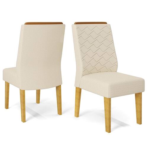 Design funcional com inclinação no encosto e acabamento bordado, ideal para compor ambientes com conforto e elegância. Kit 02 Cadeiras de jantar com estrutura em MDP/MDF de 18 e 25 mm (suporta até 130 kg). Assento e encosto estofados com espuma D20 e D13, revestidos em tecido 100% poliéster. Encosto com detalhe bordado, inclinação ergonômica e espaldar em MDF. Possui quatro pés em MDF de 25 mm com sapatas deslizadoras. Acabamento em impressão UV texturizada fosca e bordas em papel. Este móvel chegará em sua casa separado em 01 volume.