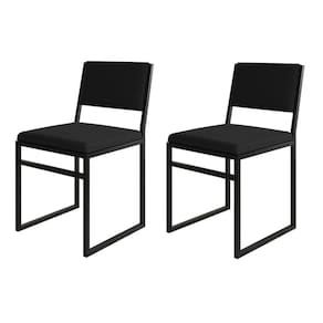 IMAGENS MERAMENTE ILUSTRATIVAS REALIZADO EDIÇÃO, PODENDO HAVER UMA PEQUENA VARIAÇÃO DE COR DEPENDENDO DE CADA TELA OU MONITOR.Kit 2 Cadeiras De Jantar Industrial Assento Estofado Veludo Preto Isa