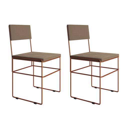 Kit 2 Cadeiras de Jantar Industrial Estofadas Veludo Bege Base Cobre Vitoria