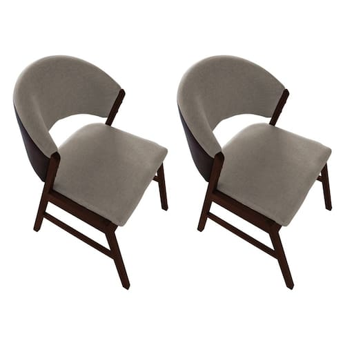 Kit 2 Cadeiras de Jantar Madeira Maciça Castanho Débora Linho Bege Compose Facto Ocre