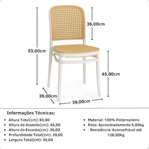 A Cadeira de Jantar Roma também possui o benefício de ser confeccionada com materiais de alta qualidade. Feita 100% em polipropileno, material que assegura alta durabilidade e qualidade ao produto.