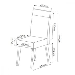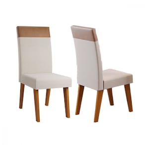 Características: - Estrutura em madeira de Eucalipto de 25 mm e MDF de 18 mm - Assento e Encosto com espuma D20 - Possui 04 sapatas - 04 Pés em Madeira de Eucalipto de 25 mm - Acabamento Pintura: Semi-Brilho - Tecido Linho e Corano - Suporte de Peso 90 kg - Garantia de 03 meses