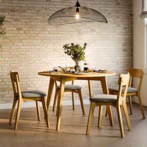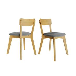 2 cadeiras de madeira cor mel com assento estofado cinza - Coleção Scandian