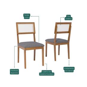 Fabricada em madeira de eucalipto de reflorestamento, a estrutura é sólida e elegante. O assento com espuma de alta densidade oferece o máximo de conforto para o uso diário, sem abrir mão do design. Acabamento da Estrutura: Verniz Almofada do assento: Fixa Altura do assento até o chão: 45 cm Altura dos Pés: 45 cm Ambiente Principal: Sala de Jantar codigo_ean: 7900288206817 Complexidade da Montagem: Baixa: pode ser montado por uma pessoa sozinha Cor: Grafite Cor do Produto: Grafite Dobrável: Não Enchimento do Assento: Espuma D-20 Escala de Brilho: Semi-Brilho Estrutura do Encosto: Madeira Giratória: Não Itens Inclusos: 2 Cadeiras, Kit Ferragens e Manual de Montagem Linha ou Coleção: Palmas Manual de Montagem e Instalação: https://product-hub-prd.madeiramadeira.com.br/361120865/documents/a0e2f680-598f-4924-b4dd-be39c76922ee3117245503517543359562625.pdf Marca: Cimol Material Principal: Madeira Eucalipto Necessita Montagem: Sim Origem do Produto: Nacional Peso: 10 kg Possui Apoio para Braços: Não Possui Apoio Para os Pés: Não Possui Assento/Encosto Estofados: Possui Somente o Assento Estofado Possui Espaldar: Não Possui Rodízio: Não Quantidade de Itens: 2 Recomendações de Uso, Manutenção e Limpeza: Para manter seu móvel novo por muito mais tempo, evite locais úmidos, mantenha-o distante de líquidos. Para limpá-lo com segurança utilize uma flanela seca sem produtos abrasivos Revestimento do Encosto: Madeira Sistema de Montagem: Parafusos, anel fixador e cantoneiras Tipo de Assento: Fixo Tipo de Encosto: Fixo Tipo de Madeira Maciça: Eucalipto
