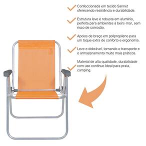 Kit 2 Cadeiras de Praia Alta Alumínio Lazy Sannet Laranja - 023511 Belfix