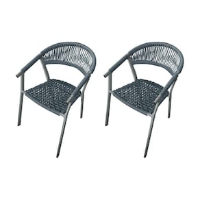 Kit 2 Cadeiras Decorativa Joana em Corda Náutica e Base em Alumínio Cinza/cinza