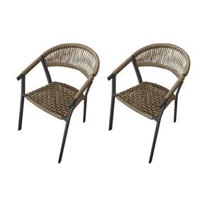 Kit 2 Cadeiras Decorativa Joana Em Corda Náutica E Base Em Alumínio Preta - Rami - Cor: Bege
