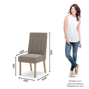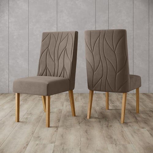 As Cadeiras Eloá, tem design moderno e elegante, sua cor discreta combina com várias decorações. O bordado exclusivo dos dois lados do encosto garante estilo e sofisticação para sua casa. As cadeiras têm 97 cm de altura, 47 cm de largura e 64 cm de profundidade. O encosto tem curvatura maior e o assento tem camadas de espumas mais grossas, para você ter mais conforto durante suas refeições. Os pés são de madeira. Acabamento da Estrutura: Pintura Almofada do assento: Fixa Altura do assento até o chão: 45.5 Ambiente Principal: Sala de Jantar Complexidade da Montagem: Baixa: pode ser montado por uma pessoa sozinha Cor: Marrom/Marrom Amêndoa Cor do Produto: Marrom/Marrom Amêndoa Dobrável: Não Enchimento do Assento: Espuma D-23 Enchimento do Encosto: Espuma D-12 Escala de Brilho: Fosco Estrutura do Assento: MDP/MDF Estrutura do Encosto: MDP/MDF Giratória: Não Itens Inclusos: 2 Cadeiras, Kit Ferragens e Manual de Montagem Linha ou Coleção: Eloá Manual de Montagem e Instalação: https://cdn2.madeiramadeira.com.br/atributo/henn-sala-de-jantar/553159-s06-cadeira-maris-cliente.pdf Necessita Montagem: Sim Origem do Produto: Nacional Peso: 9 kg Possui Apoio para Braços: Não Possui Apoio Para os Pés: Não Possui Rodízio: Não Recomendações de Uso, Manutenção e Limpeza: Para limpeza de seu móvel, use uma flanela limpa e seca. Não utilize produtos químicos que possam danificar o produto. Sistema de Montagem: Parafusos Tipo de Assento: Fixo Tipo de Encosto: Fixo