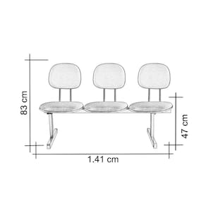 - Possui 1,00mt de comprimento e os pés tem 58cm de profundidade Altura do assento até o chão: 47 cm Ambiente Principal: Comércio Assento Estofado: Sim Cada Assento Suporta Até (kg): 130 kg Complexidade da Montagem: Baixa: pode ser montado por uma pessoa sozinha Cor: Vermelho Cor do Produto: Vermelho Informações Complementares: Sem apoio para braços Itens Inclusos: 2 - Assentos,Kit de parafusos, 2 - Encostos, 2 Estruturas longarina Linha ou Coleção: Longarinas Manual de Montagem e Instalação: https://product-hub-prd.madeiramadeira.com.br/840981/documents/2e162937-bc35-4e68-ba4c-9abcb8e75b9d1258114manual.pdf Material da Base: Tubo Cromado Material do Assento: Almofada com Espuma Material do Braço: Ferro Necessita Montagem: Sim Origem do Produto: Nacional Peso: 16,8 kg Possui Apoio para Braços: Não Quantidade de Itens: 3 Quantidade de Lugares: 03 Recomendações de Uso, Manutenção e Limpeza: Pano levemente úmido com água Sistema de Montagem: Parafusos Ean: 7908308791800