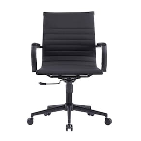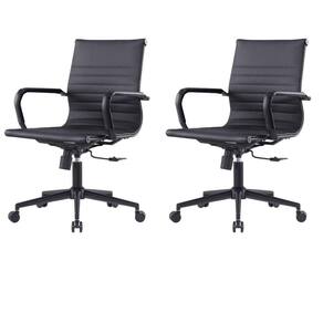 Kit 2 Cadeiras Escritório Manhattan Black Esteirinha Diretor Fratini PU Preto Base Rodízio Preto