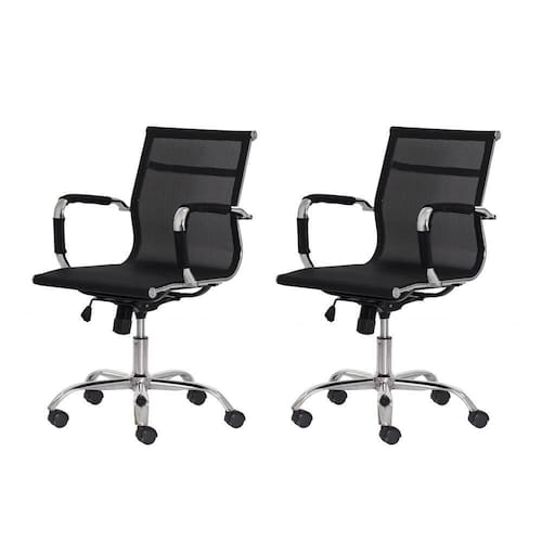 Kit 2 Cadeiras Escritório Mesh Diretor Preta Base Giratória Cromada Altura Ajustável Modelo: Cadeira Escritório Mesh Diretor Preta Assento: Encosto e Assento tela Mesh Base: Aço Cromado