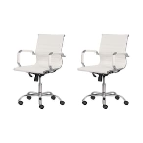 Kit 2 Cadeiras Escritório Stripes Diretor Pu Branca Base Giratória Cromada Altura Ajustável Modelo: Cadeira Escritório Stripes Diretor PU Branca Assento: Estrutura Revestida em Pu Base: Aço Cromado