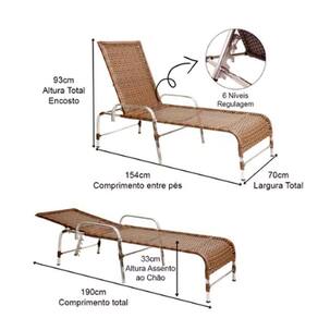 Dimensoes da Espreguicadeira Catar: Altura: 36 cm Largura: 70 cm Profundidade: 195 cm Suporta ate 200 kg Com regulagem