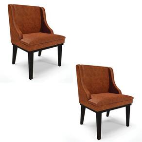 Kit 2 Cadeiras Estofadas Base Fixa de Madeira Preto Lia Sintético Premium Nozes - Ibiza