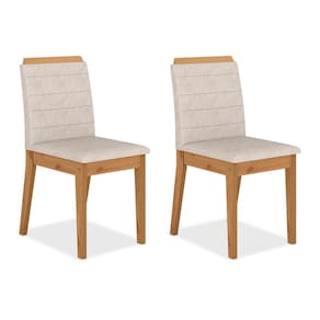 Detalhes Técnicos das Cadeiras: - Acabamento da Cadeira: Assento e Encosto Tapeçados - Almofada do Assento: Fixa - Cadeira Estofada: Sim - Peso Suportado da Cadeira: 90 KG - Facilidade da Montagem: Médial - Tonalidade da estrutura da Cadeira: Cinamomo - Tonalidade do Tecido: Suede Bege - Assento: D16 - Encosto: D14 - Tipo de Pintura: UV Texturizada - Material da Estrutura: MDF 25mm e 18mm - Medida da Cadeira: 95CM x 44CM x 50CM