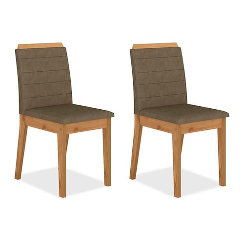 Detalhes Técnicos das Cadeiras: - Acabamento da Cadeira: Assento e Encosto Tapeçados - Almofada do Assento: Fixa - Cadeira Estofada: Sim - Peso Suportado da Cadeira: 90 KG - Facilidade da Montagem: Médial - Tonalidade da estrutura da Cadeira: Cinamomo - Tonalidade do Tecido: Suede Capuccino - Assento: D16 - Encosto: D14 - Tipo de Pintura: UV Texturizada - Material da Estrutura: MDF 25mm e 18mm - Medida da Cadeira: 95CM x 44CM x 50CM