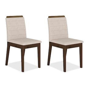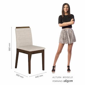 Detalhes Técnicos das Cadeiras: - Acabamento da Cadeira: Assento e Encosto Tapeçados - Almofada do Assento: Fixa - Cadeira Estofada: Sim - Peso Suportado da Cadeira: 90 KG - Facilidade da Montagem: Médial - Tonalidade da estrutura da Cadeira: Imbuia - Tonalidade do Tecido: Suede Bege - Assento: D16 - Encosto: D14 - Tipo de Pintura: UV Texturizada - Material da Estrutura: MDF 25mm e 18mm - Medida da Cadeira: 95CM x 44CM x 50CM