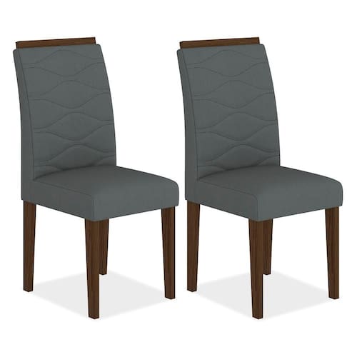 Detalhes Técnicos das Cadeiras: - Acabamento da Cadeira: Assento e Encosto Tapeçados - Almofada do Assento: Fixa - Cadeira Estofada: Sim - Peso Suporte da Cadeira: 90 KG - Facilidade da Montagem: Medial - Tonalidade da Cadeira: Imbuia - Tonalidade do Tecido: Suede Cinza - Assento: D16 - Encosto: D14 - Tipo de Pintura: UV Texturizada - Material da Estrutura: MDF 25mm e 18mm - Medida da Cadeira: 100CM x 44CM x 50CM