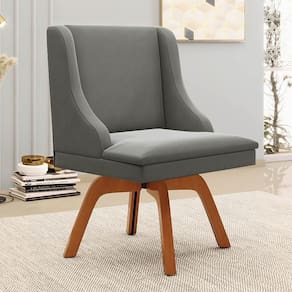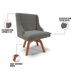 A Cadeira Estofada Lia possui design sofisticado e é ideal para quem busca aconchego e sofisticação na hora das refeições. A Base Giratória de Madeira é resistente e permite que se movimente com facilidade e ainda suporta até 120kg! Além disso, a Cadeira Estofada é produzida com Madeira Eucalipto de reflorestamento ecologicamente correta e o estofado é composto em espuma macia D-23 e revestido em tecido Suede, altamente resistente, agradável ao toque, confortável e versátil, ou seja, combina com vários estilos de decoração!