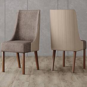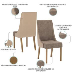 Kit 2 Cadeiras Estofadas Ivy Corano Bege Suede Cacao Henn Corano Bege Suede Cacao