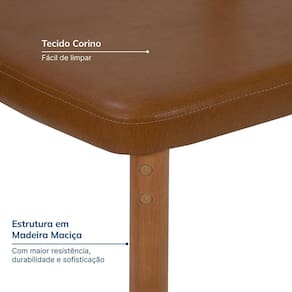 O assento da Pitanga é produzido em espuma D28, um material conhecido por sua densidade e capacidade de manter a forma ao longo do tempo. Esse assento é revestido em linho de fácil limpeza, que não só contribui para a praticidade no dia a dia, mas também adiciona uma textura suave e agradável ao toque. Para aqueles que procuram um toque extra de sofisticação, a cadeira Pitanga também está disponível com assento em sintético na cor whisky, que adiciona um ar de elegância atemporal ao design.