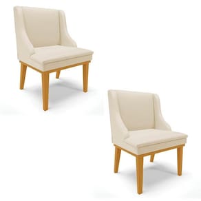 Kit 2 Cadeiras Estofadas Sala De Jantar Base Fixa De Madeira Castanho Lia Sintético Bege - Ibiza