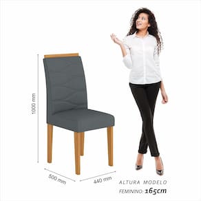 Detalhes Técnicos das Cadeiras -Assento e Encosto Tapeçados, Estofados e Fixos -Cadeira suporta até 90KG -Facilidade da Montagem:Média -Tonalidade Cadeira:Cinamomo/Suede Cinza -Espuma Assento:D23 -Espuma Encosto:D16 -Pintura UV Texturizada -Material Estrutura:MDF 25mm/18mm -Medida da Cadeira:100CMx44CMx50CM
