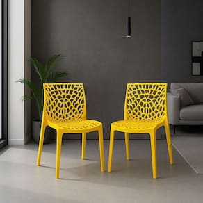 Kit 2 Cadeiras Gruvyer para Hotel Restaurante Pub Bar Estrutura em Plástico Encosto Vazado Resistente a Raios UV